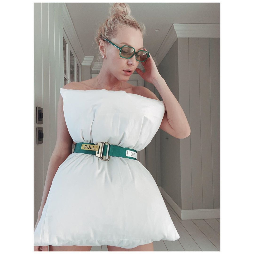 Η γνωστή τραγουδίστρια αποδέχτηκε το challenge της καραντίνας και έκανε το μαξιλάρι της φόρεμα. «I know. Άργησα, αλλά όταν έβγαλα αυτές τις φωτογραφίες με το μαξιλάρι μου, είχα πιο σημαντικά posts να κάνω. Πέρασε ο καιρός, πάλιωσε και το Challenge,αλλά Who cares? Right?», σημείωσε στη λεζάντα της ανάρτησής της.