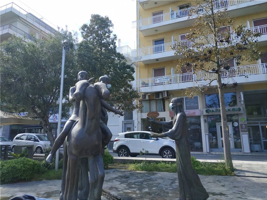 Έτσι, όποιος κυκλοφόρησε ανήμερα της Πρωτομαγιάς στο κέντρο της πόλης αλλά και παραλιακά είδε με έκπληξη πολλά αγάλματα να έχουν «λάβει» και αυτά τα… απαιτούμενα μέτρα προστασίας για τον κορωνοϊό!