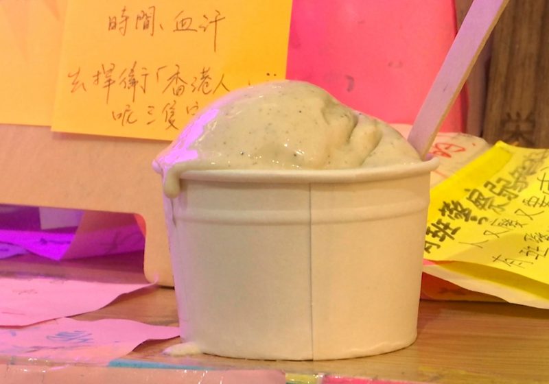 Η κ. Wong, 32 ετών, που έζησε πέρυσι μια έντονη διαδήλωση με δεκάδες δακρυγόνα, δοκίμασε το παγωτό και το χαρακτήρισε «μια αναδρομή που μου θυμίζει πόσο επώδυνη ήταν εκείνη η μέρα, κάτι που δεν πρέπει να ξεχάσω».