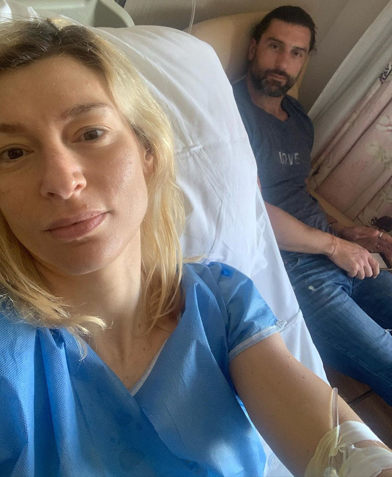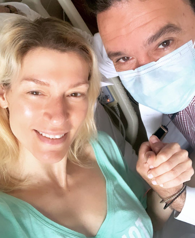 Η ηθοποιός δημοσίευσε τρεις φωτογραφίες μέσα στο δωμάτιο του νοσοκομείου με τον σύζυγό της, Μιχάλη Χατζαντωνά, τη μητέρα της και τον γυναικολόγο της.