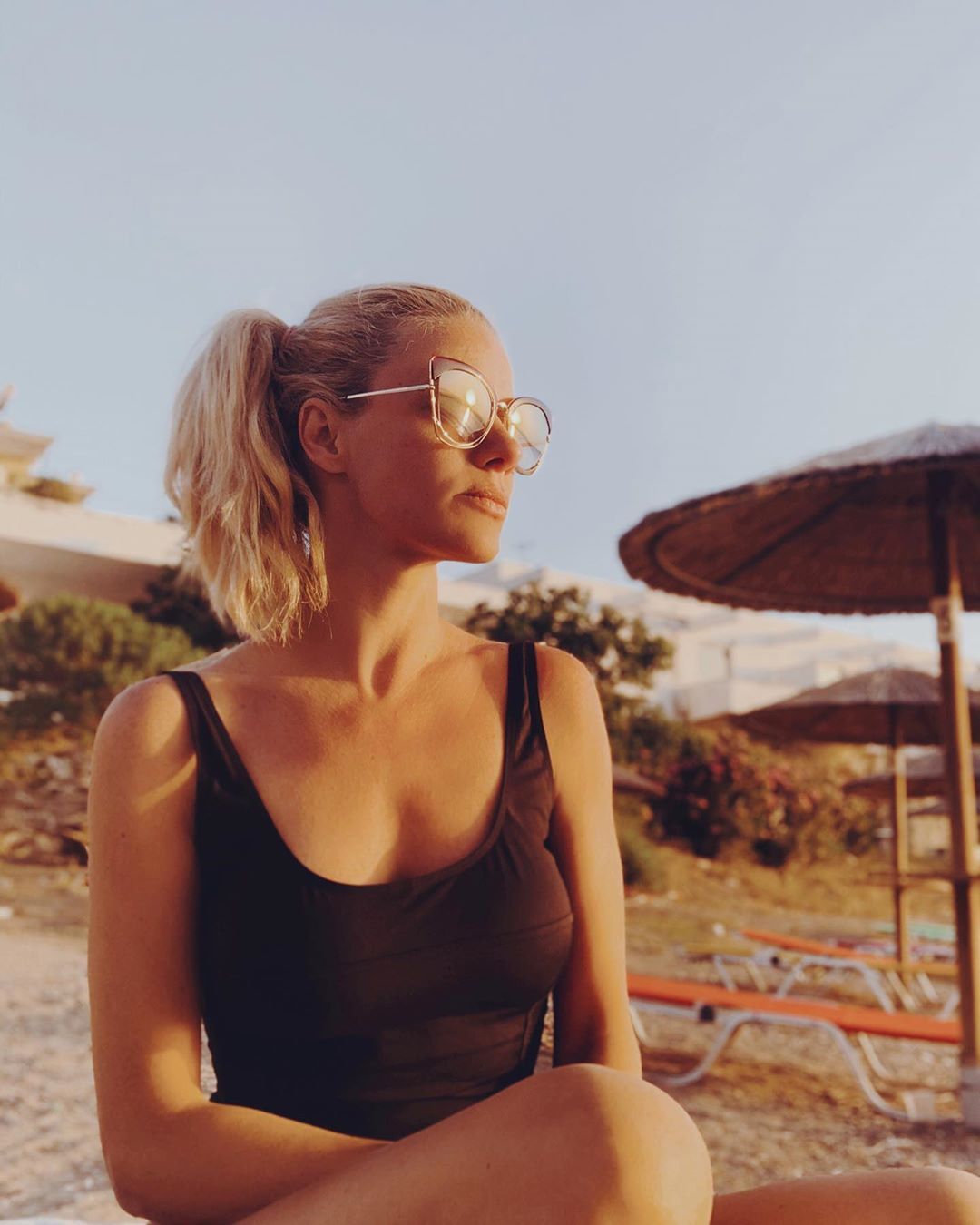 Ανέβασε μία φωτογραφία της από την παραλία στον προσωπικό της λογαριασμό, καθώς αγναντεύει τον ήλιο και τη θάλασσα από την Αίγινα.
