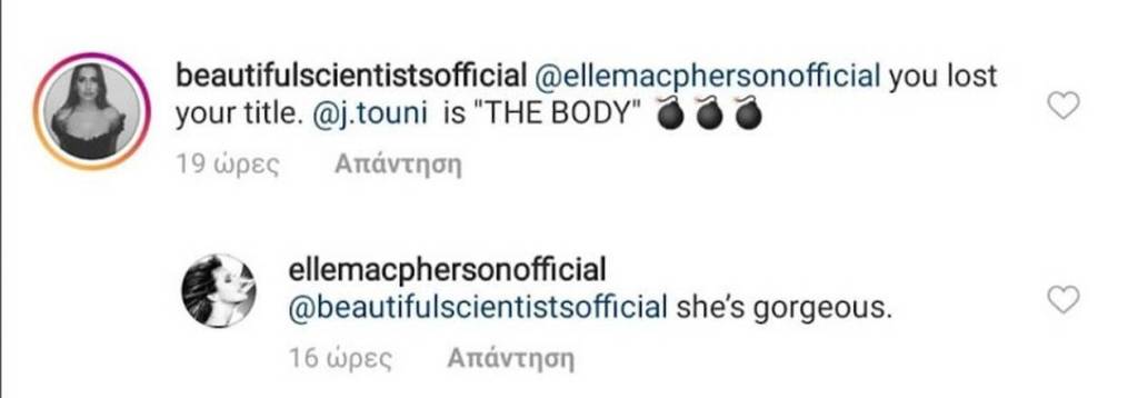 Όσο απίστευτο κι αν ακούγεται η Αυστραλή όχι μόνο είδε το σχόλιο, αλλά απάντησε κιόλας, προς έκπληξη όλων. «Είναι υπέροχη», έγραψε η Ελ Μακ Φέρσον και προκάλεσε… φρενίτιδα ενθουσιασμού στους θαυμαστές της Ιωάννας Τούνη.