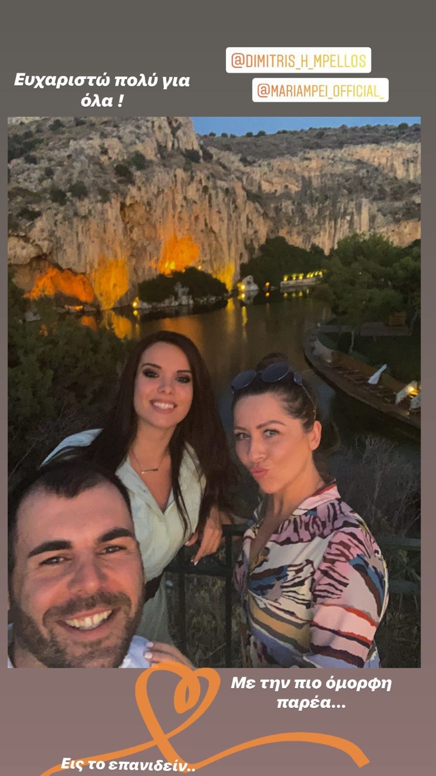 Ο λόγος για τον Δημήτρη Μπέλλο και την Μαρία Μπέη! Οι τρεις τους απόλαυσαν το δείπνο τους δίπλα της λίμνης της Βουλιαγμένης και μοιράστηκαν μερικές φωτογραφίες με τους διαδικτυακούς φίλους τους.
