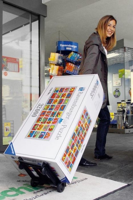 Το παζλ έχει κερδίσει μια θέση στα ρεκόρ Γκίνες, ενώ χαρακτηριστικό του μεγέθους του είναι ότι πωλείται μαζί με καροτσάκι για τη μεταφορά του…