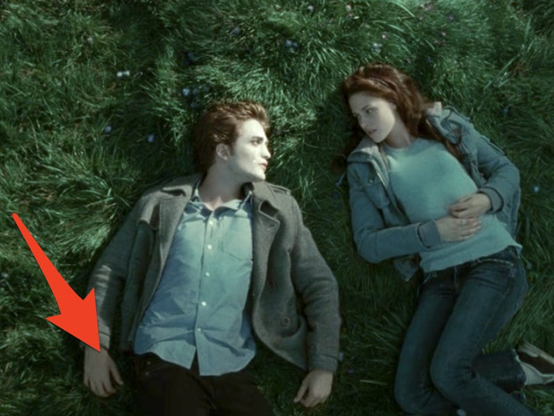 Επίσης, στην περίφημη σκηνή του γρασιδιού, εκεί που υποτίθεται ότι το δέρμα του Έντουάρντ Κάλεν μοιάζει να αναβλύζει χρυσόσκονη κάτω από το ζεστό φως του ήλιου, ακριβώς επειδή είναι βαμπίρ, όλοι κοιτούν το πρόσωπο του πρωταγωνιστή, σωστά; Ναι, μόνο που το δέρμα του ηθοποιού οι μακιγιέζ της παραγωγής το έχουν περιποιηθεί μόνο στο πρόσωπο και τα χέρια του τα ξέχασαν, απ’ ό,τι προέκυψε από τους εξόχως παρατηρητικούς φανς.
