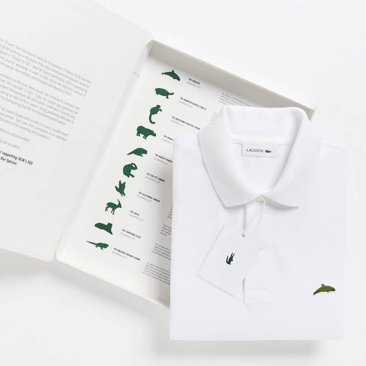 Η γαλλική μάρκα Lacoste συνεργάστηκε με το SOS (Save Our Species) της IUCN – έτσι ώστε να ευαισθητοποιήσει το κοινό για την εξαφάνιση πολλών και σημαντικών ειδών.
