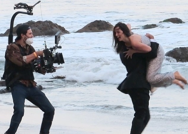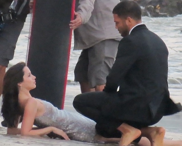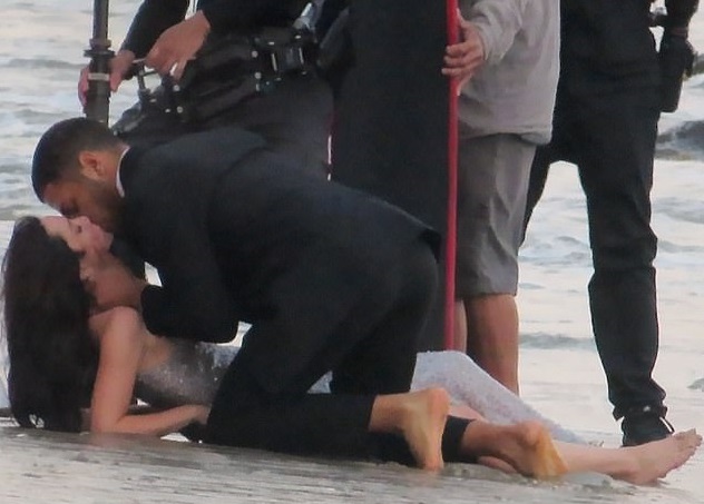 Η 30χρονη σταρ φορούσε ένα καθαρό λαμπερό φόρεμα καθώς ξάπλωνε στην παραλία, ενώ ο συνάδελφός της τη φίλησε με πάθος για τα γυρίσματα μιας διαφήμισης αρώματος.