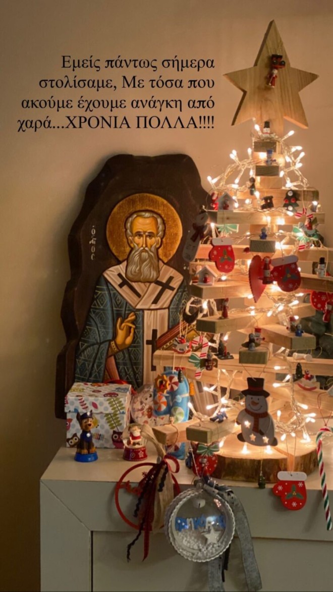 Ο Γρηγόρης Αρναούτογλου, το στόλισε με ξύλινα πολύχρωμα στολίδια και φωτάκια και έγραψε στη φωτογραφία που δημοσίευσε σε Insta Story: «Εμείς σήμερα στολίσαμε! Με τόσα που ακούμε, έχουμε ανάγκη από χαρά! Χρόνια Πολλά”!».