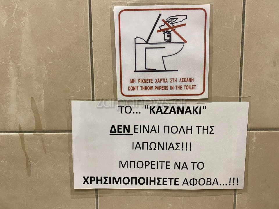 Έναν… εναλλακτικό τρόπο σκέφτηκα οι εργαζόμενοι μιας καφετέριας στα Χανιά για να βοηθήσουν τους πελάτες τους να κρατήσουν καθαρό τον χώρο της τουαλέτας.