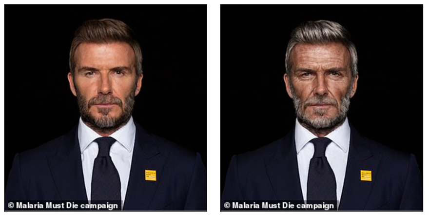 Ο Ντέιβιντ Μπέκαμ «μεταμορφώθηκε» σε έναν 70χρονο για τη νέα καμπάνια για τη μάχη κατά της μαλάρια.