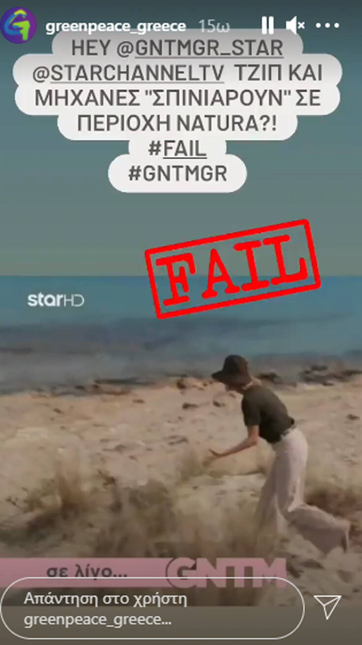 Έτσι, με το που προβλήθηκε το επεισόδιο του ριάλιτι του Star προκλήθηκαν σοβαρές αντιδράσεις και διαμαρτυρίες στα social media εκ μέρους της Greenpeace Ελλάδας αλλά και τηλεθεατών. Μάλιστα, η Greenpeace Ελλάδας στο λογαριασμό της στο Instagram ανέβασε σχετικά στόρι με σκηνές από το GNTM, τονίζοντας πως είναι λάθος αυτό που κάνουν.