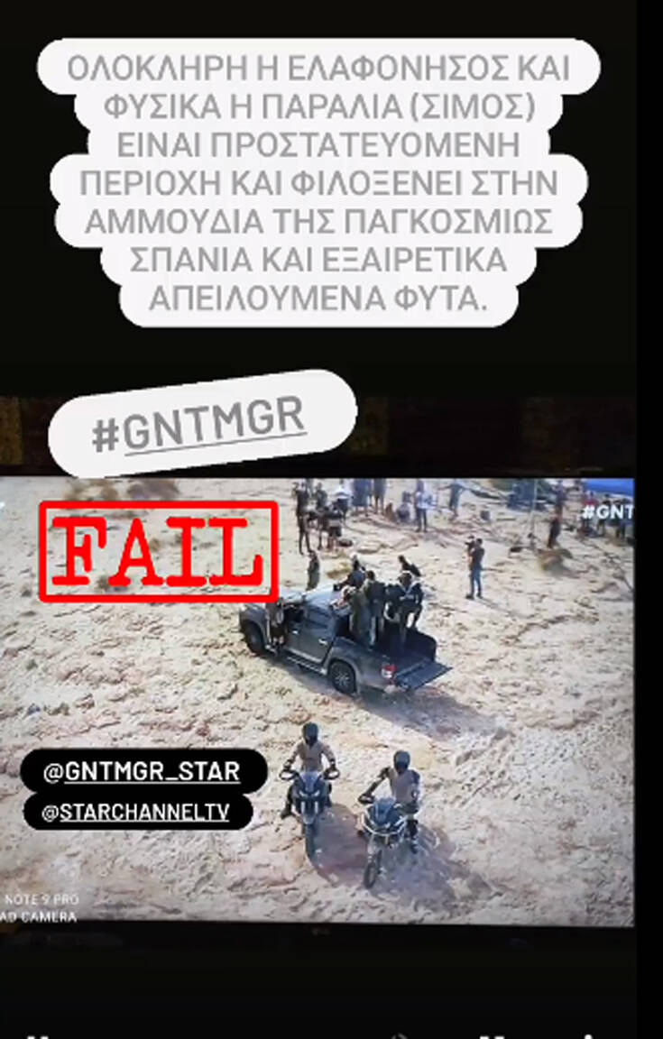 Θύελλα οργισμένων αντιδράσεων έχει προκαλέσει στα social media η φωτογράφιση σε προστατευόμενη περιοχή NATURA, στην Ελαφόνησο, που προβλήθηκε στο χθεσινό επεισόδιο του GNTM 3.