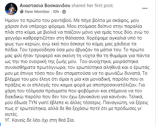 Σε αυτό το group λοιπόν έγραψε την εμπειρία της η Αναστασία Βοσκανίδου, ή Σία όπως έγινε γνωστή από την συμμετοχή της στο Bachelor.