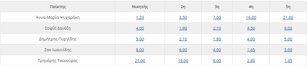 Ποιο είναι όμως το απόλυτο φαβορί για τη νίκη; Οι αποδόσεις της στοιχηματικής εταιρείας Novibet, δείχνουν ξεκάθαρα την Άννα Μαρία!