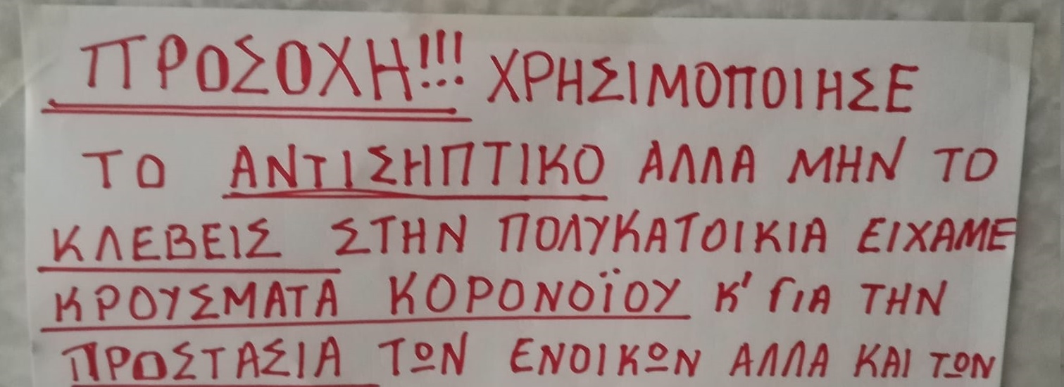 Διαχειριστής πολυκατοικίας έβγαλε ανακοίνωση για… «κλέφτη αντισηπτικών» (φώτο)