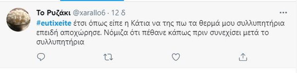 Αυτό που ανέφερε όμως για τα… συλλυπητήρια δεν έμεινε ασχολίαστο από τους τηλεθεατές και χρήστες του Twitter.