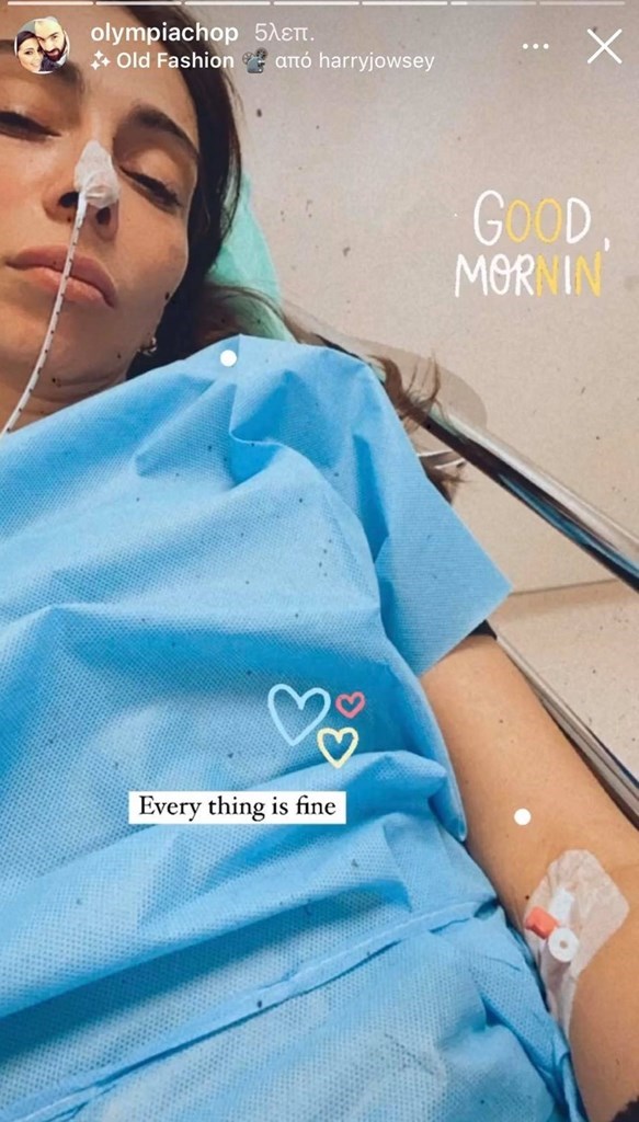 Με ανάρτησή της στα social media το πρωί της Τρίτης, η Ολυμπία Χοψονίδου ενημέρωσε τους διαδικτυακούς της ακολούθους πως βρίσκεται στο νοσοκομείο. Η σύζυγος του Βασίλη Σπανούλη ανέβασε μια φωτογραφία από το κρεβάτι του νοσοκομείου, καθησύχασε ωστόσο τους followers της λέγοντας πως όλα είναι καλά.