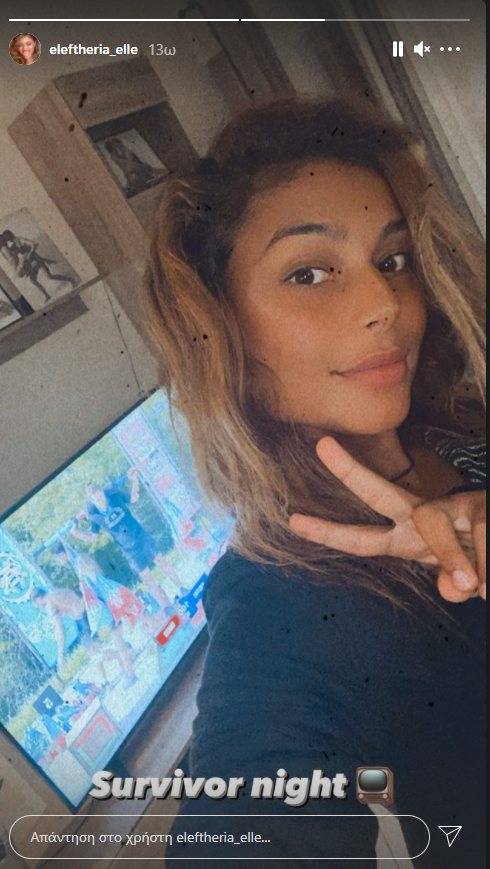 Ωστόσο η Ελευθερίου εχθές Κυριακή (18/4) επέλεξε να παρακολουθήσει τους πρώην συμπαίκτες της στο νέο επεισόδιο του Survivor και δημοσίευσε και ένα σχετικό story όπου φαίνεται ότι παρακολουθεί το reality επιβίωσης.