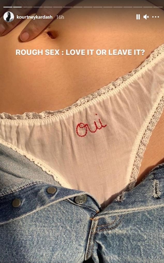 Οι αναρτήσεις και τον δυο στο instagram είναι άκρως ερωτικές. Η ίδια είναι 42 ετών αλλά (ας είναι καλά οι χειρουργοί) δείχνει μικρότερη και έχει εξαλείψει με τη βοήθεια τους τις ατέλειες στο κορμί αλλά και στο πρόσωπο της. Στην τελευταία της ανάρτηση, ξεχειλίζει από ερωτισμό. Μας δείχνει το ξεκουμπωμένο παντελόνι της και από μέσα ένα διάφανο εσώρουχο το οποίο έχει κεντημένη τη λέξη «oui» δηλαδή «ναι».