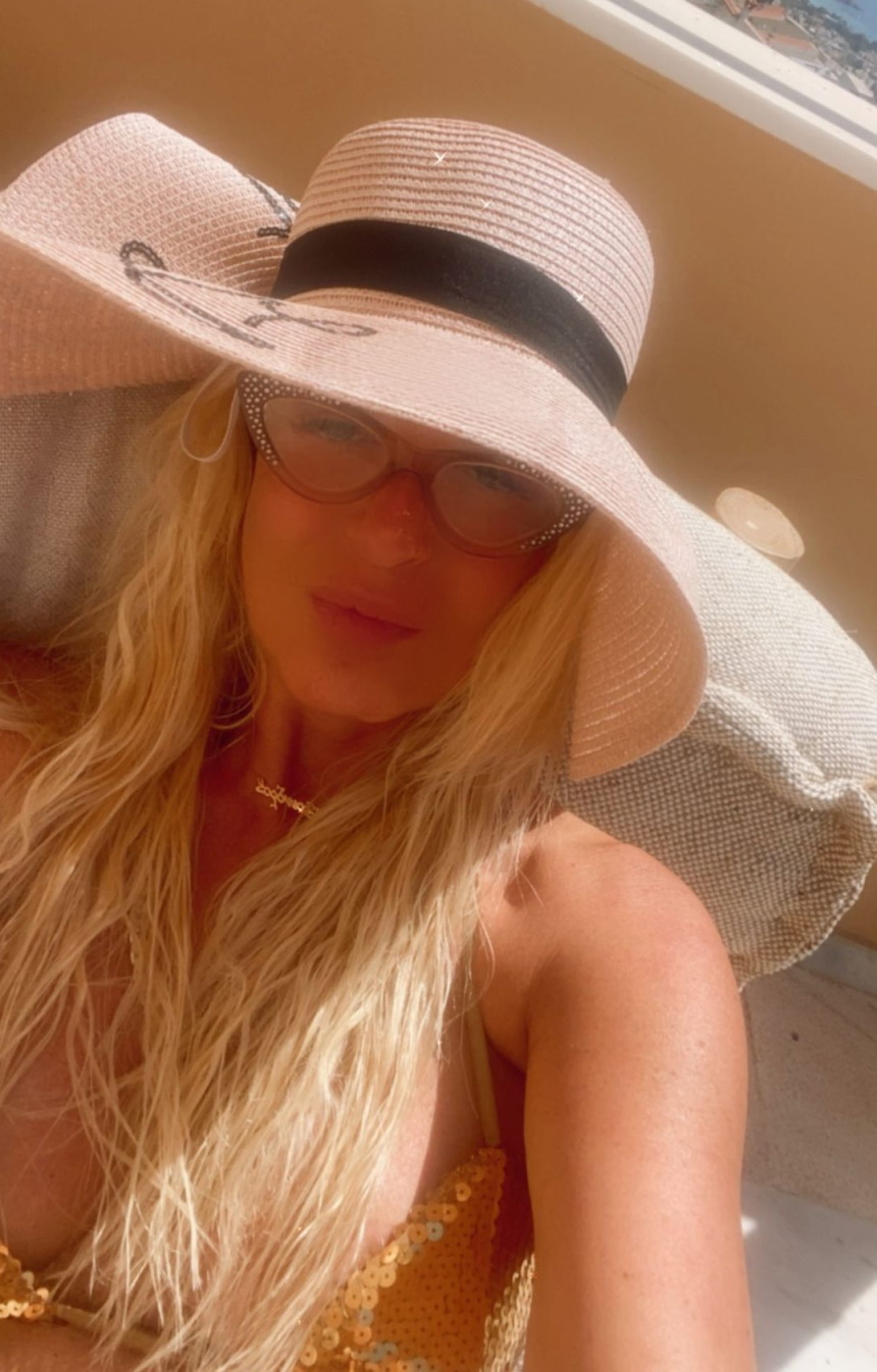 Όχι, η 53χρονη φιλόλογος και πρόεδρος του Δικτύου SDG 17 δεν έκανε εξόρμηση σε κάποια παραλία, αλλά βγήκε στην βεράντα του σπιτιού της, με χρυσό μπικίνι και μεγάλο καπέλο.