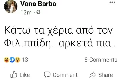 Η ανάρτηση που έκανε χθες Σάββατο στο Facebook, η Βάνα Μπάρμπα, σχετικά με τον Πέτρο Φιλιππίδη, προκάλεσε θύελλα αντιδράσεων.