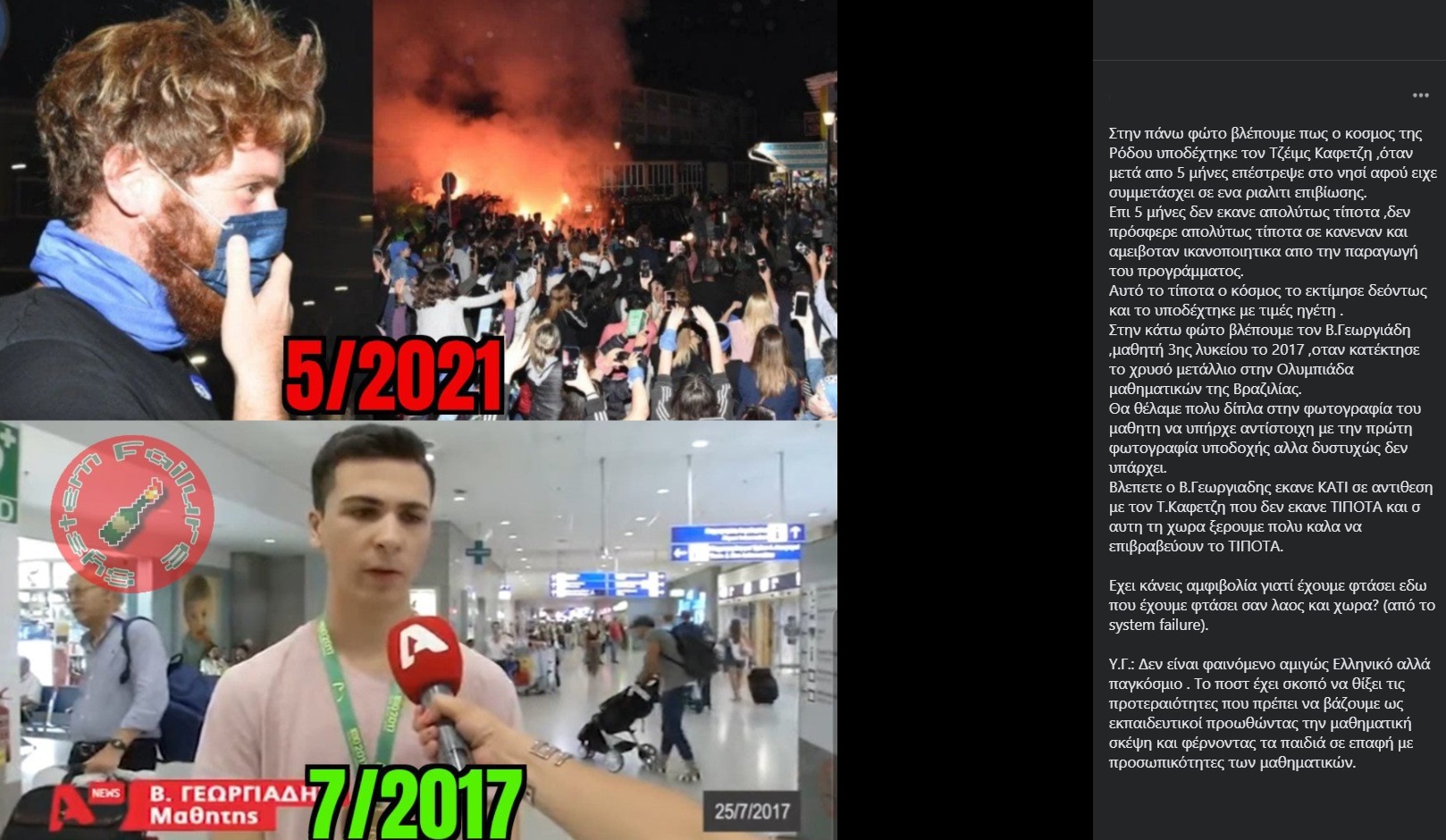 «Εάν αυτά τα πλάνα, σε μελλοντικές κοινωνίες, κρατηθεί αυτό το βιντεάκι και ένας ιστορικός του παρελθόντος – στο μέλλον – δει αυτά τα πλάνα από την Ελλάδα του 2021 και του πεις είναι η Ελλάδα της ανεργίας, της φτώχιας, είναι η Ελλάδα κατά τη διάρκεια μιας πανδημίας και μετά από ένα lockdown… η Ελλάδα που έχει περάσει μνημόνια… θα πει τότε ότι είναι ανιστόρητος, διότι αυτά εδώ τα πλάνα δείχνουν μια άλλη πραγματικότητα» είπε ο Ανδρέας Μικρούτσικος για τις σκηνές αλαλαγμού που είδαμε στην υποδοχή του James Καφετζή στη Ρόδο.