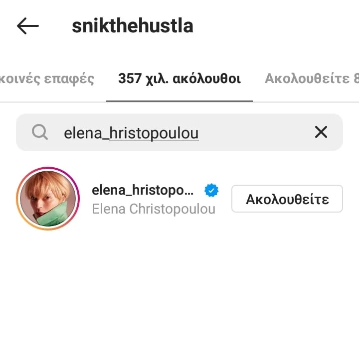 Η Έλενα Χριστοπούλου ωστόσο εξακολουθεί να τον ακολουθεί.