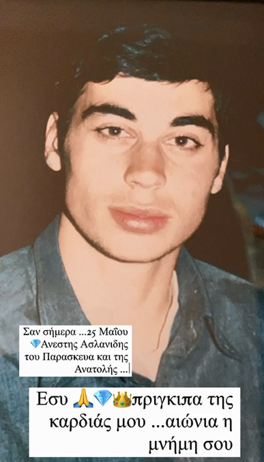 Δημοσιεύοντας μια φωτογραφία του Ανέστη στο προφίλ της στο Instagram, η Μελίνα Ασλανίδου συγκινεί, γράφοντας: “Σαν σήμερα… 25 Μαΐου. Ανέστης Ασλανίδης του Παρασκευά και της Ανατολής… Εσύ πρίγκιπα της καρδιάς μου… Αιώνια η μνήμη σου”.