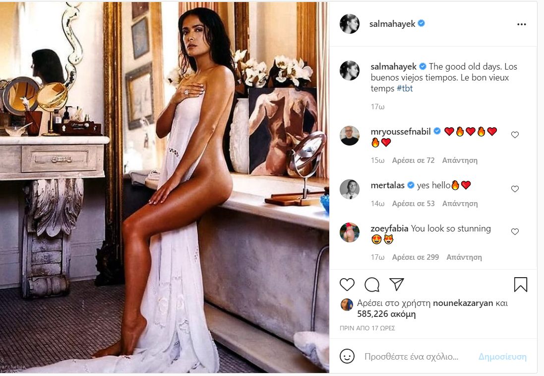 Η Σάλμα Χάγιεκ ολόγυμνη στη μπανιέρα της – Η throwback φωτογραφία που μοιράζει «υπογλώσσια» (φωτο)