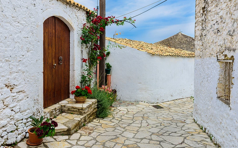 Με ένα υπέροχο σκηνικό που θυμίζει κάτι από Κυκλάδες, διαφέρει κατά πολύ από τα υπόλοιπα χωριά αλλά και την αισθητική τόσο του νησιού των Φαιάκων όσο και του Ιονίου γενικότερα.