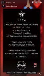 Όπως ανακοίνωσε μέσα από τα social media η ίδια η εμφάνισή της θα ακυρωθεί εξαιτίας μερικών προβλημάτων που προέκυψαν με την υγεία της.