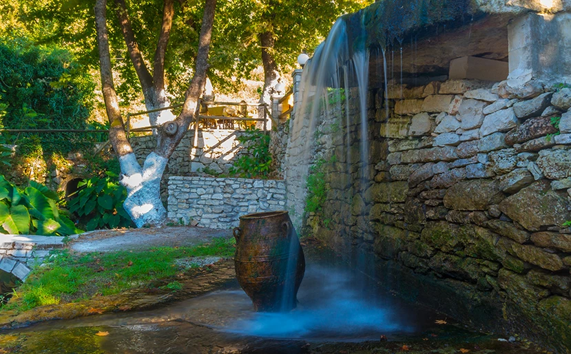 Ένα από τα βασικά χαρακτηριστικά του χωριού και ο φυσικός του πλούτος με φυσικές πηγές και έναν καταρράκτη να αποτελούν και τη δημοφιλέστερη ατραξιόν. Γνωστές και ως πηγές Αγίας Δύναμης -το νερό προέρχεται από μια κοντινή σπηλιά, μέσα στην οποία υπάρχει το μικρό παρεκκλήσι της Αγίας Δύναμης- ξεχωρίζουν για το κατάφυτο τοπίο τους, με τα νερά του ποταμού Μουσέλα να πρωταγωνιστούν στο όλο σκηνικό.