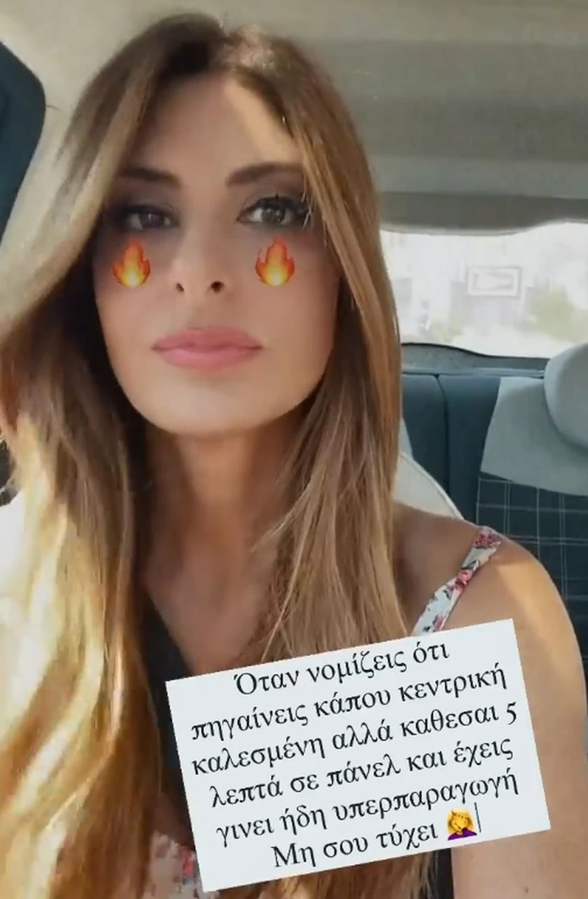 Ωστόσο, μετά το τέλος της εκπομπής έκανε μια ενοχλημένη ανάρτηση στο Instagram Story της αναφέροντας: «Όταν νομίζεις ότι πηγαίνεις κάπου κεντρική καλεσμένη, αλλά κάθεσαι 5 λεπτά σε πάνελ και έχεις γίνει υπερπαραγωγή. Μην σου τύχει».