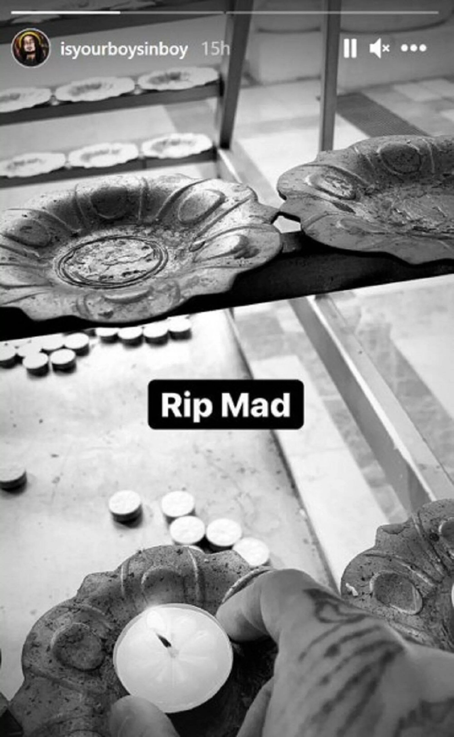 Ο 27χρονος Sin Boy, ο οποίος στο παρελθόν είχε προχωρήσει σε δηλώσεις υπέρ της θρησκείας, θέλησε να πάει στην εκκλησία και να ανάψει ένα κεράκι στη μνήμη του φίλου του. «Rip Mad» έγραψε σε story στο Instagram, δημοσιεύοντας δύο φωτογραφίες από την προσωπική του αυτή στιγμή.
