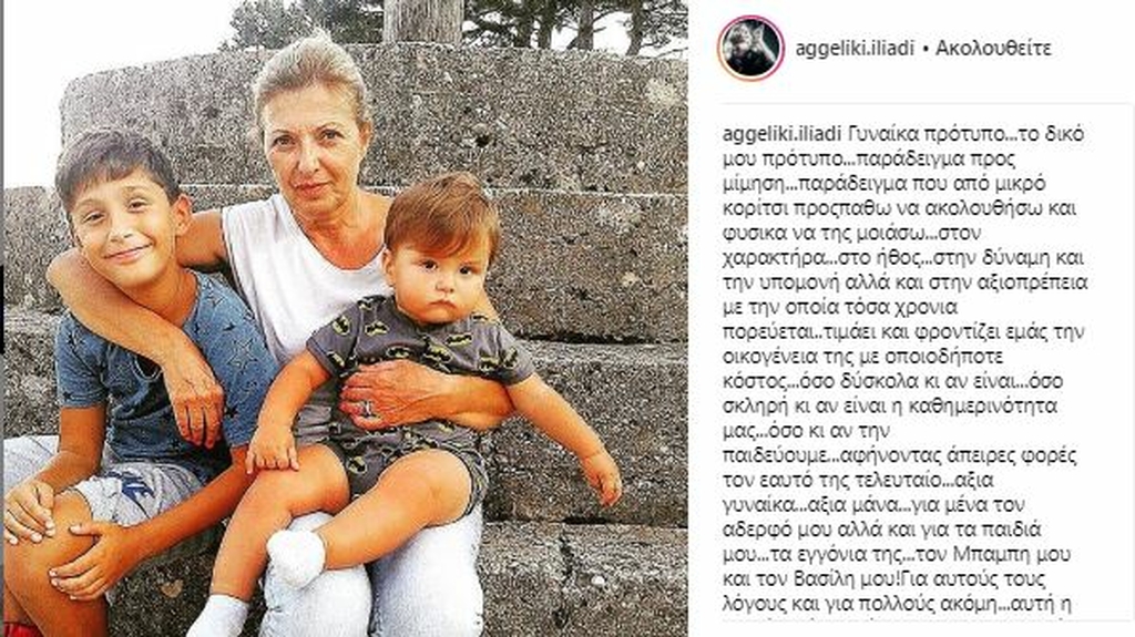 Η ίδια πόσταρε μια φωτογραφία της μαμάς της, όπου την βλέπουμε να έχει στην αγκαλιά της τους δύο γιους της και έγραψε χαρακτηριστικά στη λεζάντα: