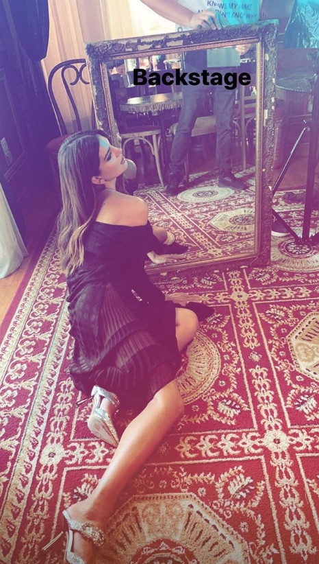Μάλιστα, η Σταματίνα Τσιμτσιλή ανάρτησε δύο φωτογραφίες στον λογαριασμό της στα Instastories της από τα παρασκήνια της φωτογράφησης που την δείχνουν με ένα μαύρο φόρεμα με διαφάνειες και δαντέλα, να ποζάρει ξαπλωμένη σε ένα χαλί και καθιστή σε μια καρέκλα, ενώ θέλοντας να τρολάρει λίγο το στιγμιότυπο, έγραψε στην λεζάντα «Τύπου GNTM» βάζοντας emoji φατσούλες που κλαίνε.
