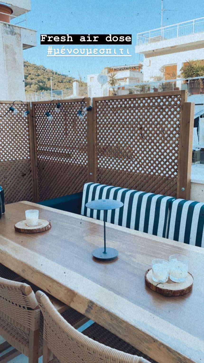 Το απόγευμα της Παρασκευής, λοιπόν, η όμορφη influencer έκανε ένα διάλειμμα από την ρουτίνα της στο δωμάτιο και βγήκε στο μπαλκόνι του σπιτιού της στο Κολωνάκι, προκειμένου να απολαύσει τον ηλιόλουστο καιρό και να εισπνεύσει καθαρό αέρα. «Μένουμε σπίτι», σχολιάζει πάνω στη φωτογραφία της.