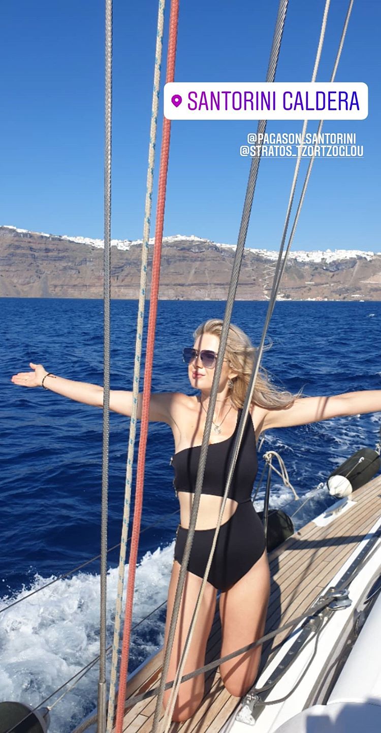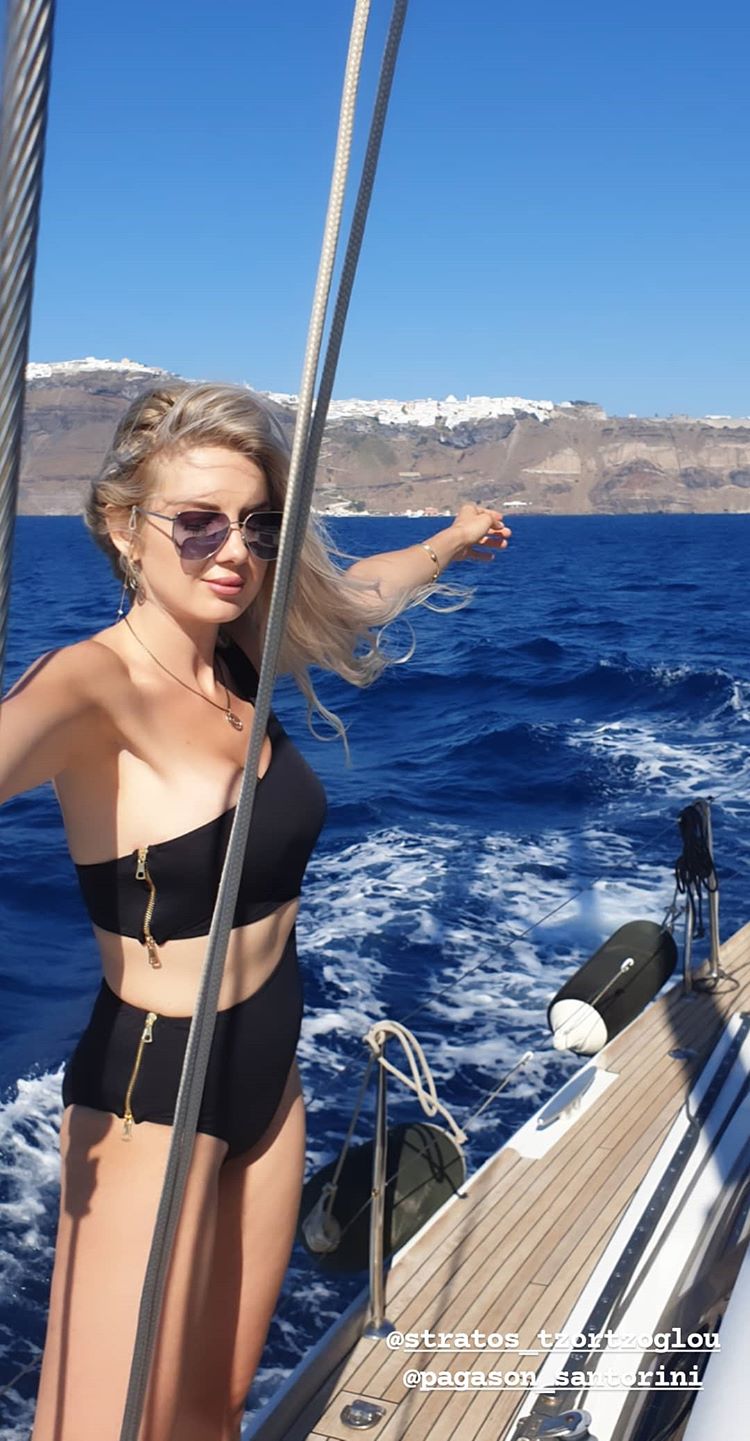 Ο Στράτος και η Σοφία μάλιστα αποφάσισαν να κάνουν το γύρω του νησιού με πολυτελές γιοτ και να προσεγγίσουν τις πιο παρθένες παραλίες της Σαντορίνης. Οι δυο τους, ερωτευμένοι και χαλαροί απόλαυσαν την όμορφη βόλτα, έκαναν τις βουτιές τους και πόζαραν σαν άλλοι «Τζακ» και «Ρόουζ» στην επική σκηνή του Τιτανικού στο πλοίο!