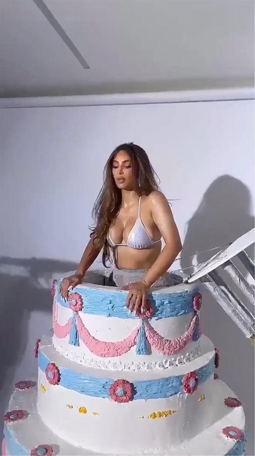 H Κιμ Καρντάσιαν ετοιμάζεται να γιορτάσει τα 40ά της γενέθλια και θα το κάνει με τον πιο φαντασμαγορικό και εντυπωσιακό τρόπο. Έβαλε το «καυτό» ασημί μικροσκοπικό της μπικίνι και ξεπρόβαλλε μέσα από μια τεράστια τούρτα.
