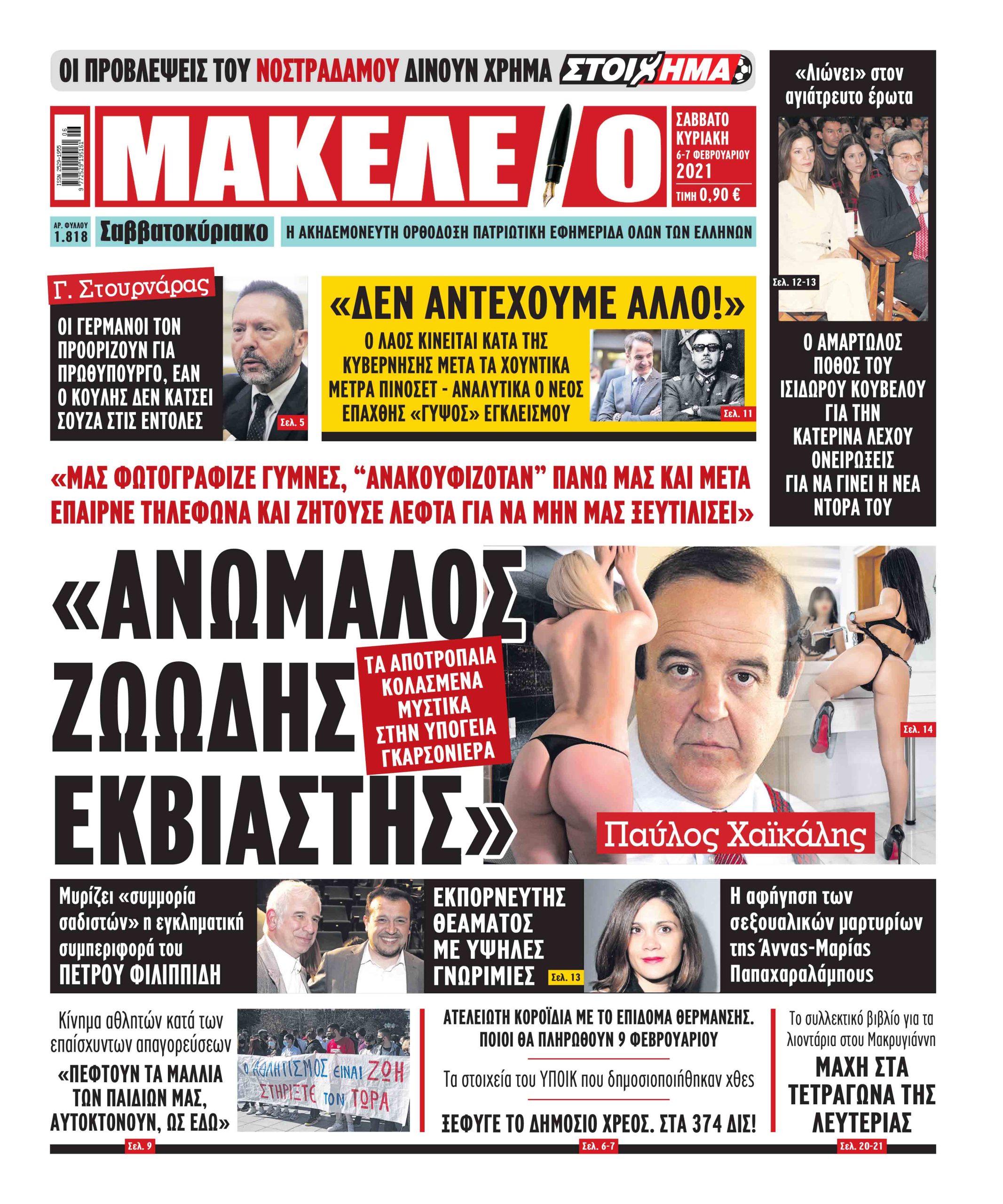 Έτσι σήμερα το πρωτοσέλιδο της εφημερίδας “Μακελειό” αποκαλύπτει απίστευτες καταγγελίες κατά του Πάυλου Χαϊκάλη αναφέροντας γεγονότα που προκαλούν φρίκη.