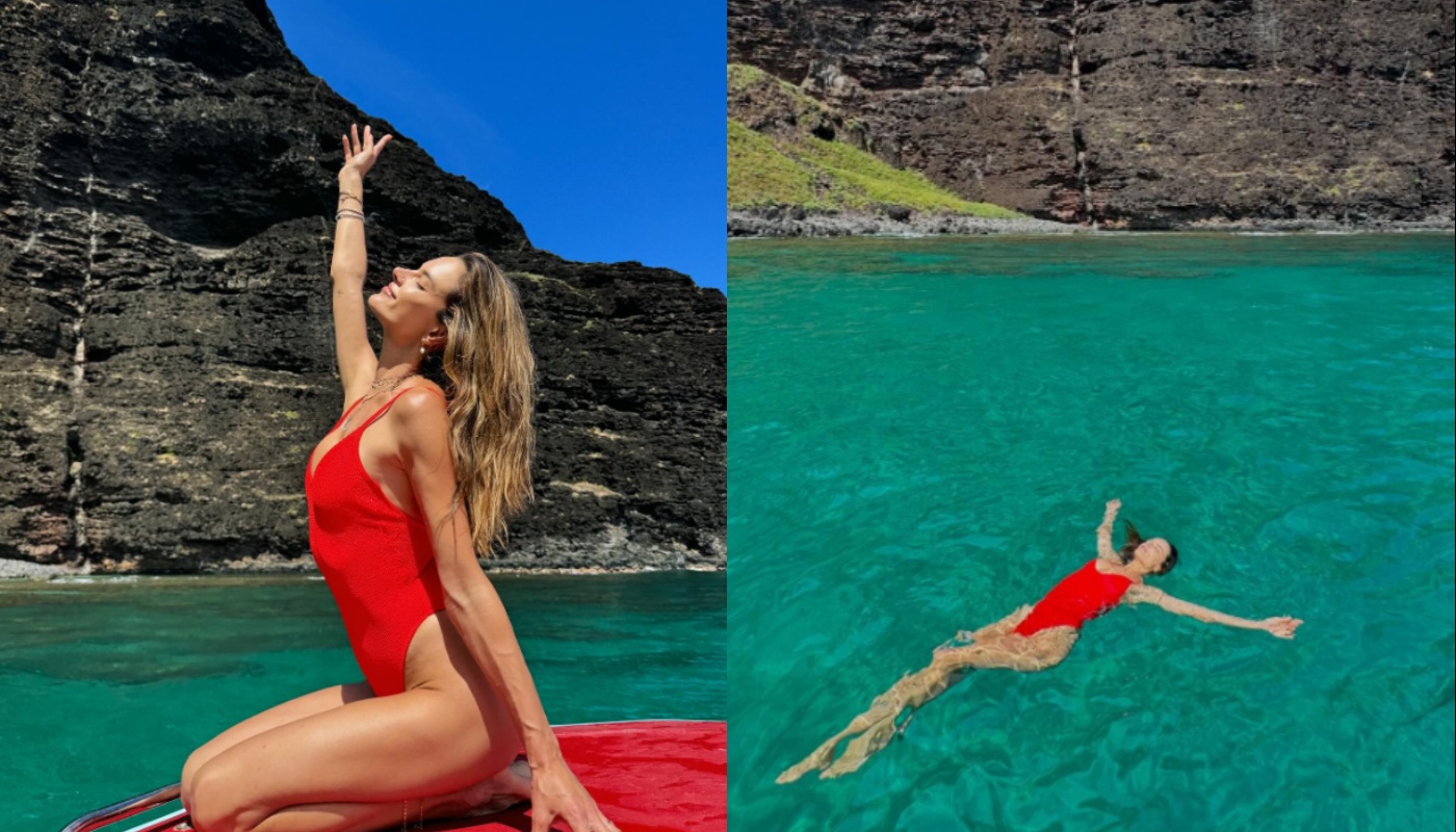 Στη δημοσίευσή της, η Αλεσάντρα Αμπρόσιο δείχνει τα μαγευτικά τοπία του νησιού Καουάι στη Χαβάη, ενώ ποζάρει κι εκείνη μπροστά στο απέραντο γαλάζιο με ένα κόκκινο μαγιό.