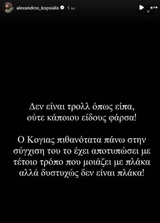Με μια ανάρτηση του, ο Χρήστος Κόγιας γνωστοποίησε από νωρίς το τραγικό αυτό περιστατικό, την οποία διευκρίνισε ο Αλέξανδρος Κοψιάλης.