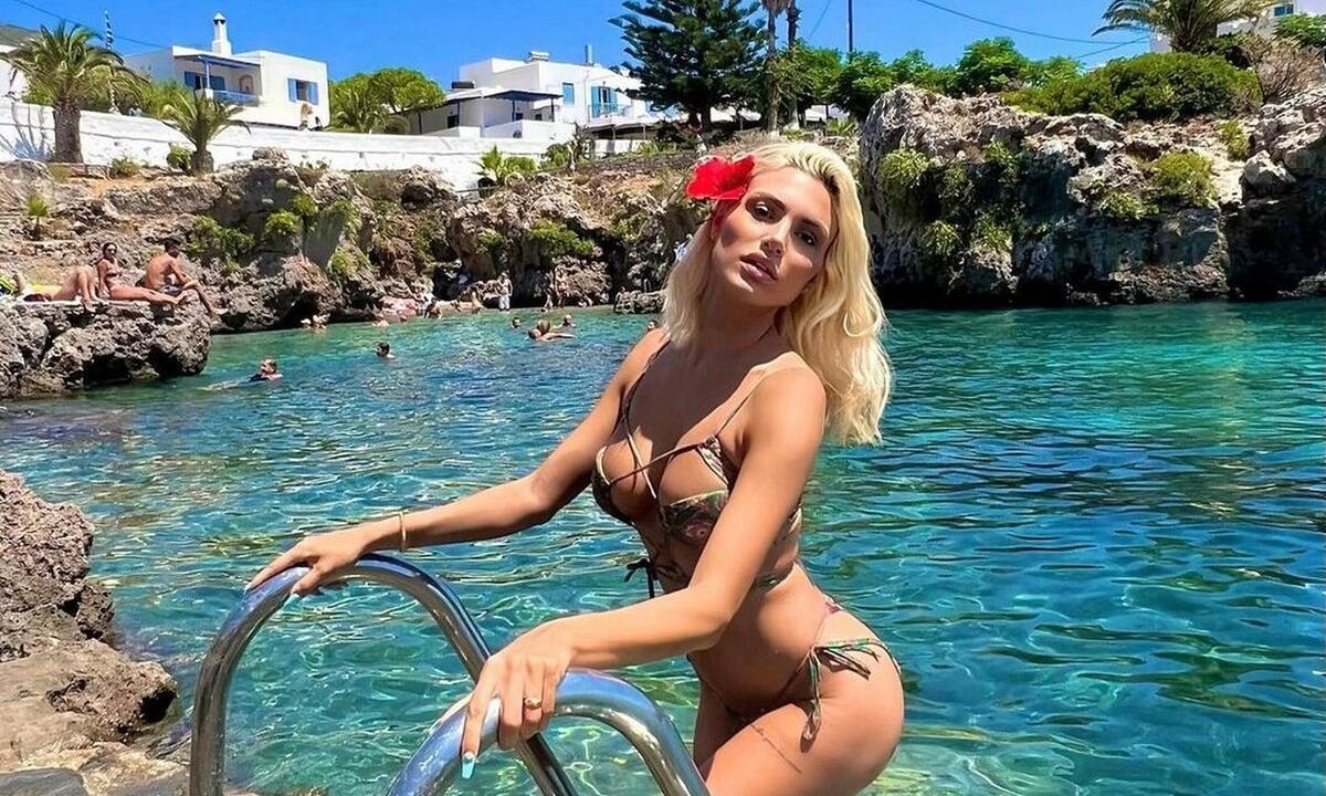 Συγκεκριμένα η γνωστή influencer ανέβασε μια φωτογραφία στην οποία μας δείχνει με τον πλέον εμφατικό τρόπο το καλλίγραμμο και μαυρισμένο της κορμί, φορώντας ένα μικροσκοπικό μπικίνι και έχοντας θέα το απέραντο γαλάζιο του κυκλαδίτικο νησιού.