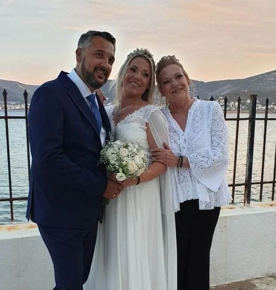 Στο πλευρό της Αντζυς ήταν φυσικά η μητέρα της Ελένη, μαζί με τον δεύτερο σύζυγό της Βασίλη, με τον οποίο μετρούν 25 χρόνια κοινής πορείας. Ήταν μάλιστα ο Βασίλης που παρέδωσε τη νύφη στον γαμπρό, αφού ο ίδιος την έχει μεγαλώσει σαν κόρη του.
