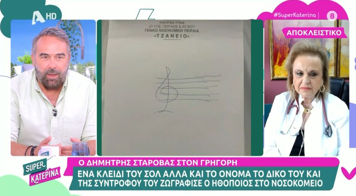 Ο Γρηγόρης Γκουντάρας είπε στο «Super Κατερίνα» ότι επισκέφτηκε τον Δημήτρη Σταρόβα στο νοσοκομείο και έδειξε στον τηλεοπτικό αέρα, το σημείωμα του μουσικού.