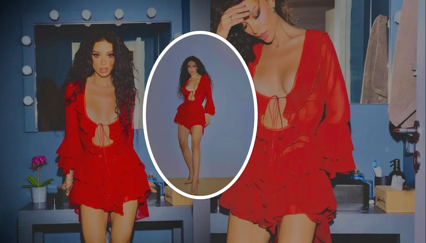Φορώντας ένα κοντό κόκκινο φόρεμα με ανοιχτό ντεκολτέ, η δημοφιλής τραγουδίστρια έγραψε στη λεζάντα των φωτογραφιών: «Κι αν…».