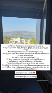 «Μετά από 9 μέρες επιστρέφουμε σπίτι μας. 9 μέρες γεμάτες άγχη, δάκρυα, φόβο, αλλά και απίστευτη δύναμη. Και όλα έρχονται εκεί που δεν τα περιμένεις! Όλα έρχονται και σου υπενθυμίζουν πόσο σημαντικό είναι να εκτιμάς κάθε στιγμή. Να μην ξεχνάς να προσεύχεσαι.