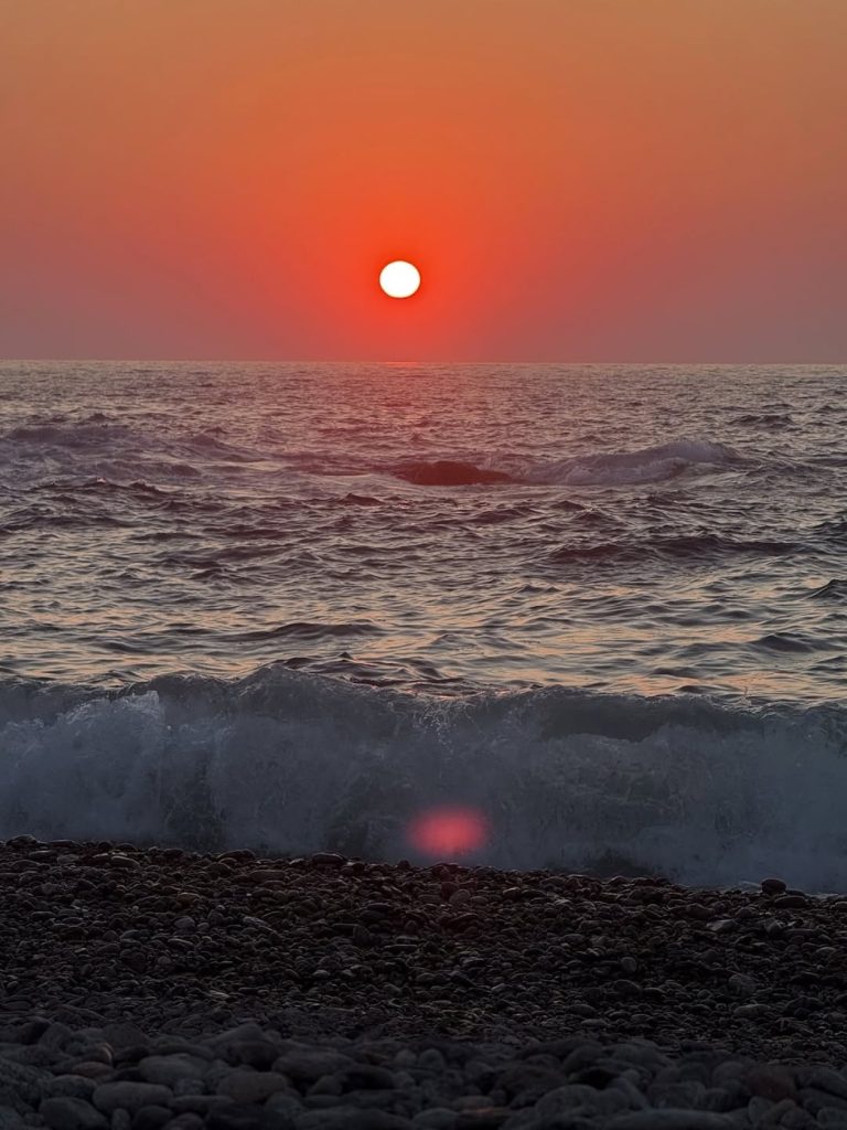 Τοπίο ονειρικό, σχεδόν κινηματογραφικό, με τη δύση του ήλιου να βάφει τον ουρανό κόκκινο.