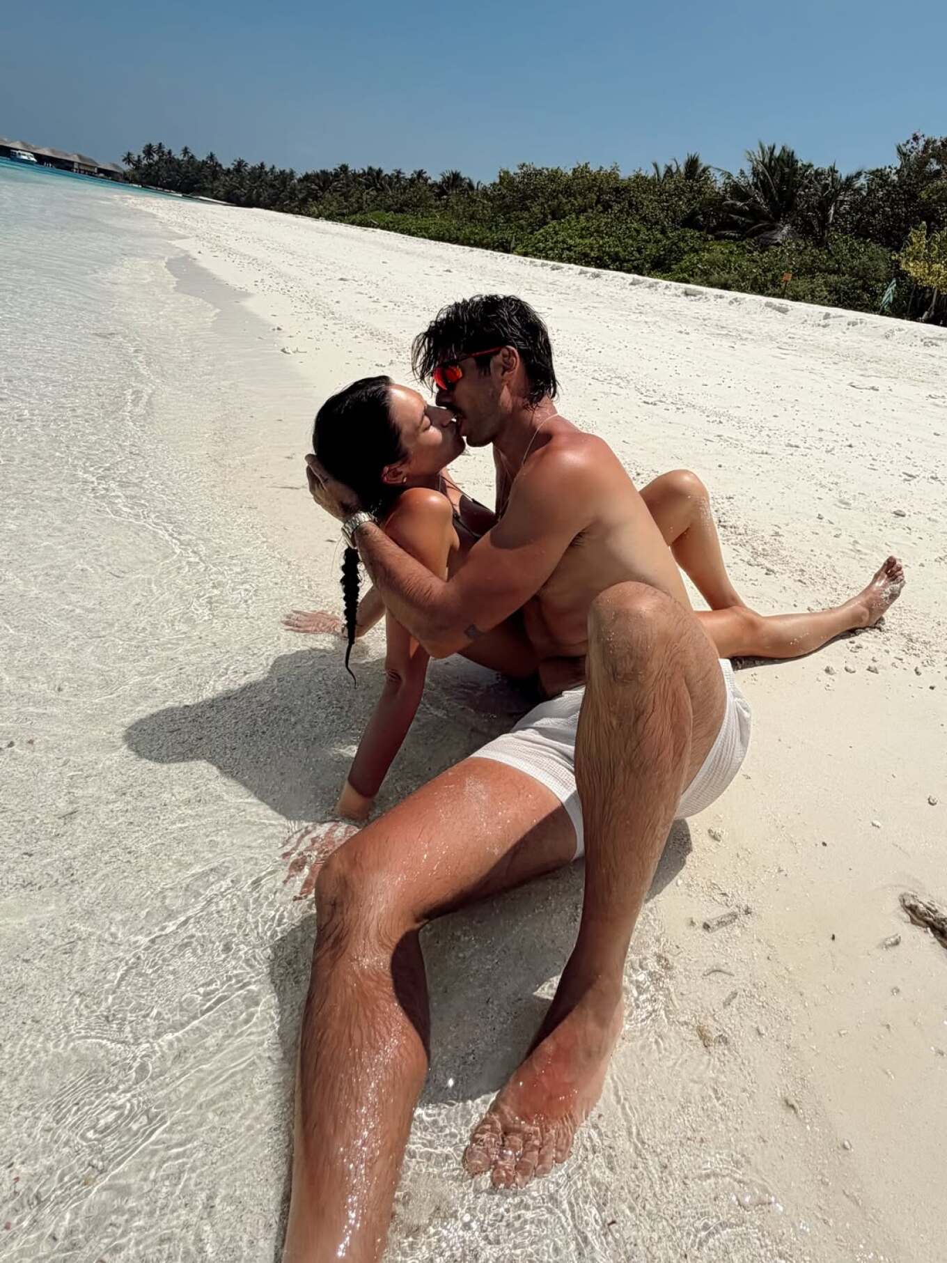 Στα στιγμιότυπα που ανάρτησε το μοντέλο, εκείνος και η σύζυγός του ανταλλάσσουν φιλιά στην παραλία, άλλοτε ξαπλωμένοι στην άμμο και άλλοτε αγκαλιασμένοι μέσα στη θάλασσα.