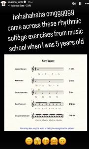 Η τραγουδίστρια ανέβασε την παρτιτούρα από τα μαθήματα θεωρίας μουσικής που έκανε όταν ήταν μικρή και μάθαινε το ρυθμικό σολφέζ.